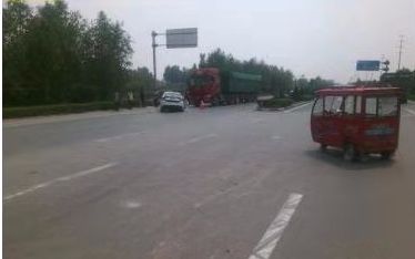 5月15日12時20分許,在衡德高速故城支線縣城連接線1km+100m處,無證駕駛電動三輪摩托車的賈某,與駕駛小型轎車(乘坐人:朱某樂、王某)的姜某相撞,隨后小型轎車又與梁某駕駛的重型半掛牽引車相撞。事故造成朱某身受重傷。
