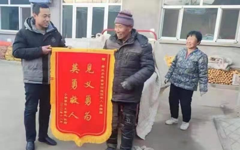 老人家屬通過朱加官村村支書找到了朱振國,拿著錦旗和一沓現金登門道謝。“您救人的時候連手機都沒來得及掏,這是給您買手機的錢,一定要收下。”面對感謝,朱振國執意婉拒了:“沒掏手機怨俺自己,跟你們沒關系,這錢俺不能要!”在朱振國看來,一面寫有“見義勇為、英勇救人”的鮮紅錦旗就是對他最大的褒獎。