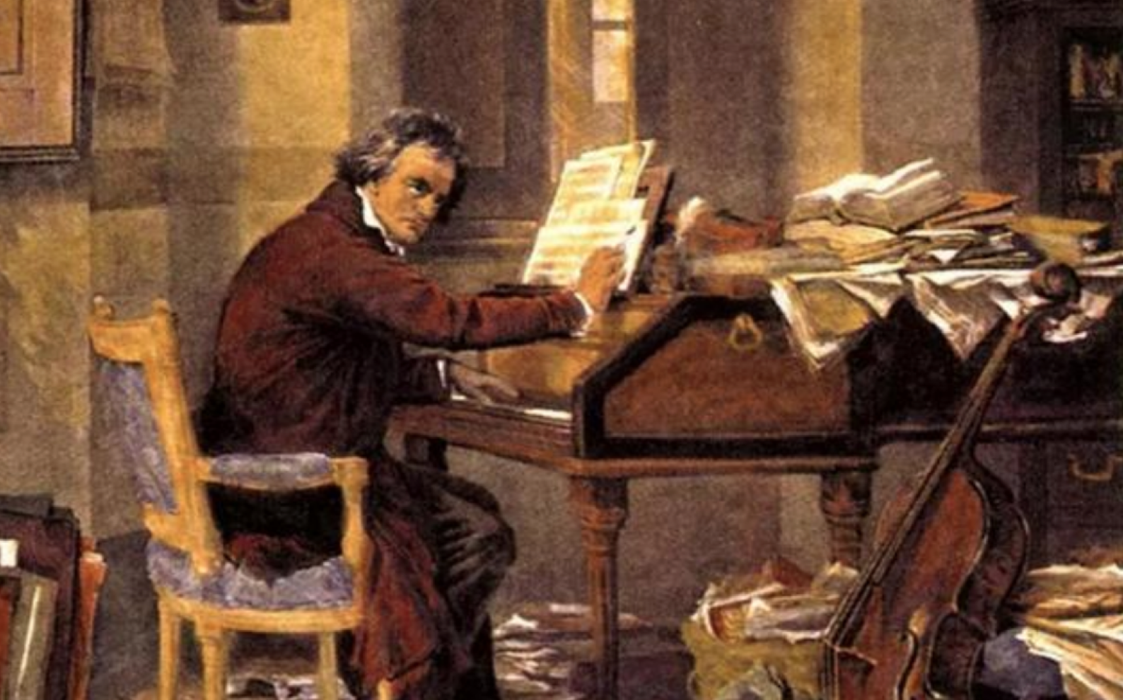 油畫(huà)《在鋼琴前創(chuàng)作的貝多芬》。