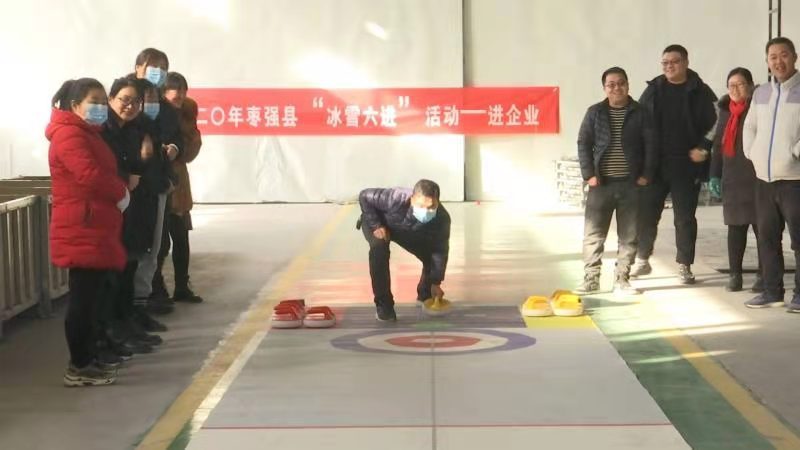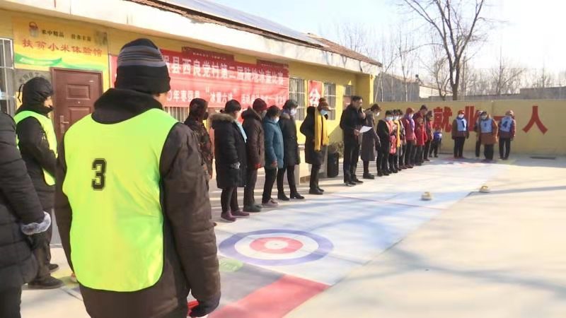 棗強(qiáng)縣馬屯鎮(zhèn)西良黨村舉辦陸地冰壺比賽。朱亞培 攝