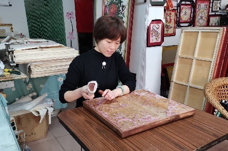 守得住清苦、耐著住寂寞,才能學(xué)到真功夫。辛艷君苦中作樂,越學(xué)越著迷,“每天坐十幾個(gè)小時(shí),腰酸背疼,還舍不得放下刻刀。”足足用了3年時(shí)間,辛艷君才感覺自己的刻版技術(shù)到了爐火純青的地步。