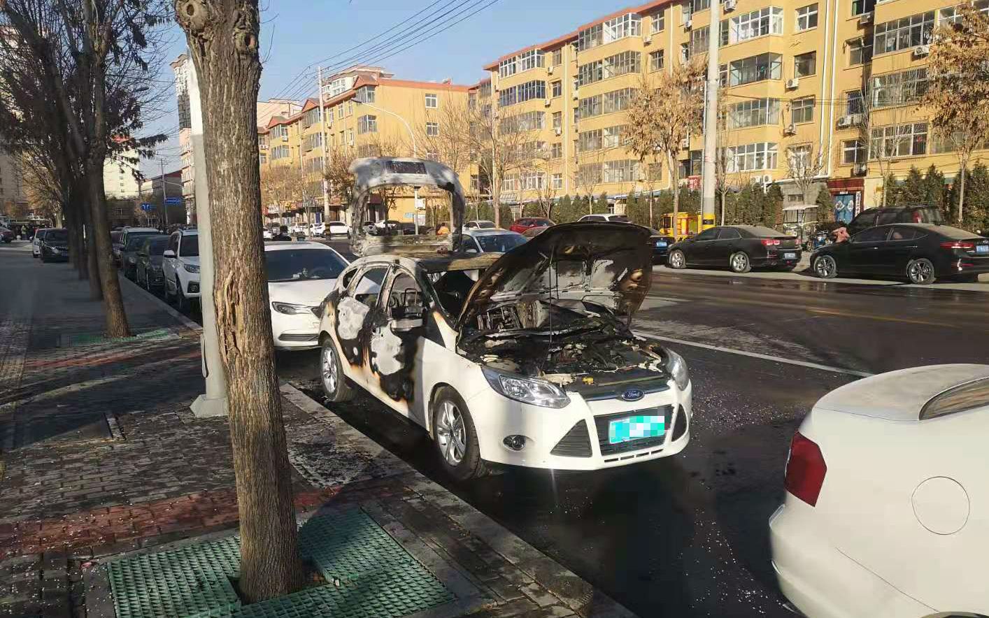當(dāng)日上午9時(shí)30分許,記者在現(xiàn)場(chǎng)看到,起火的是一輛白色福特轎車,當(dāng)時(shí)大火已被撲滅,但車輛損毀嚴(yán)重。在市民提供的多段視頻中,記者看到,這輛轎車起火時(shí)火勢(shì)很大,冒出濃濃黑煙。