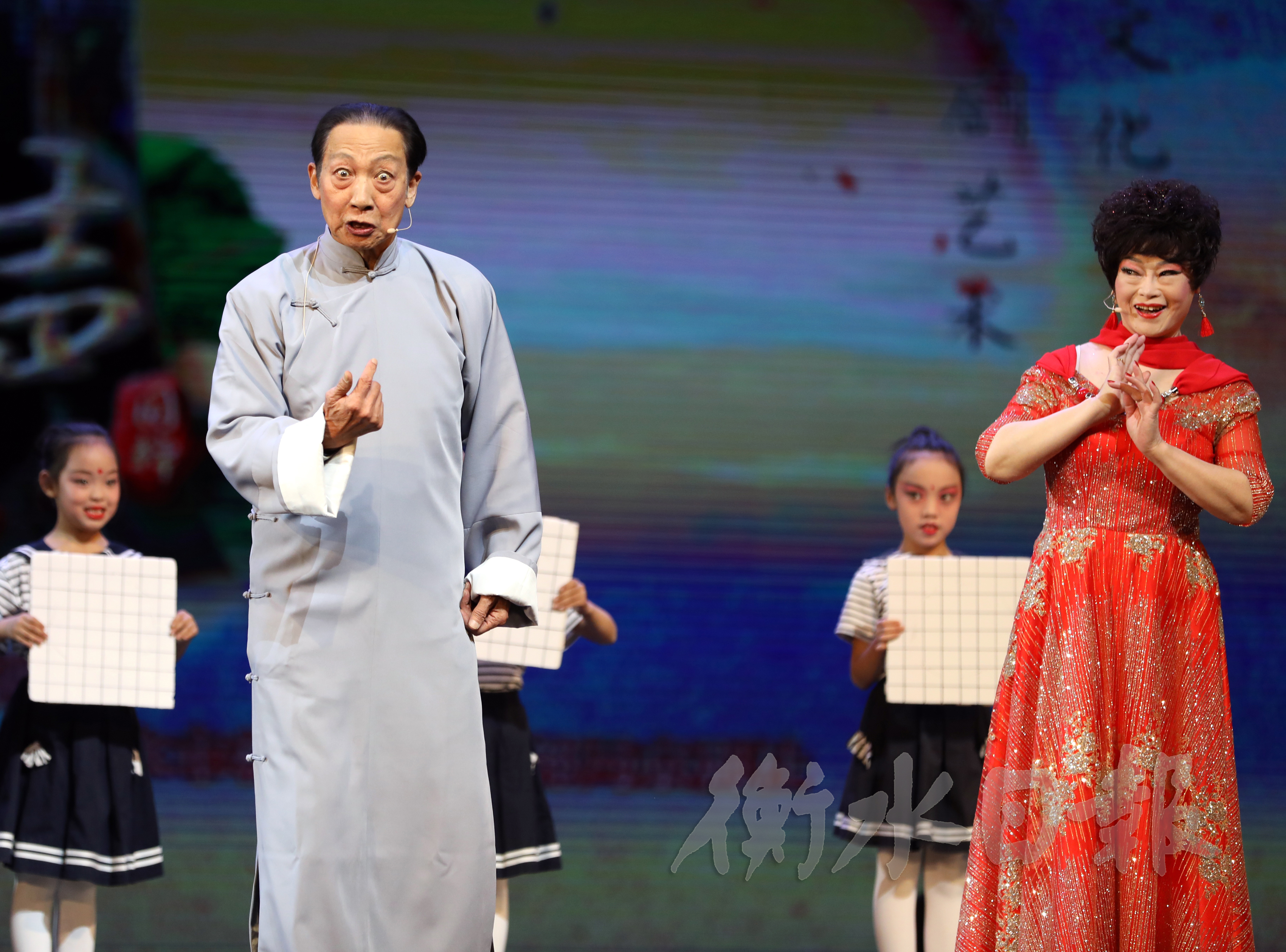 肖世明和陳榮段在楊樹社區微劇場參加活動。