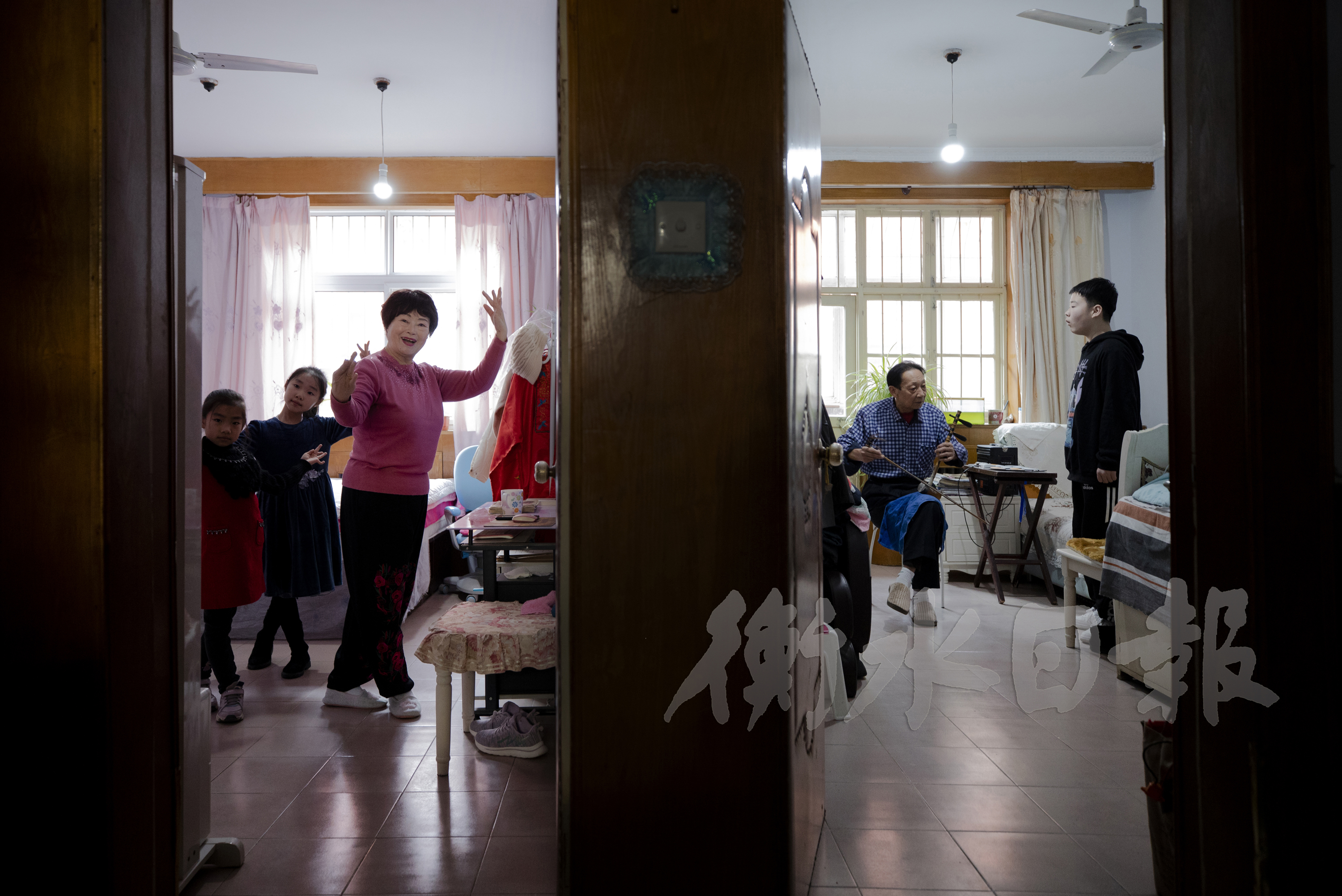 12月25日一早,在市民肖世明家中,吃過早飯,他拉著京胡為唱《紅娘》的妻子陳榮段伴奏,相得益彰。唱過幾段,兩人便離開家,匆匆趕往市區勝利路小學,去給京劇社團的孩子們上課。“一天不唱自己知道,兩天不唱同行知道,三天不唱觀眾就知道了。”熱愛京劇的兩位老人說,他們平時在家吊嗓,去公園、社區演唱,參加邀請演出,四處帶學生,日子過得既忙碌又樂呵。