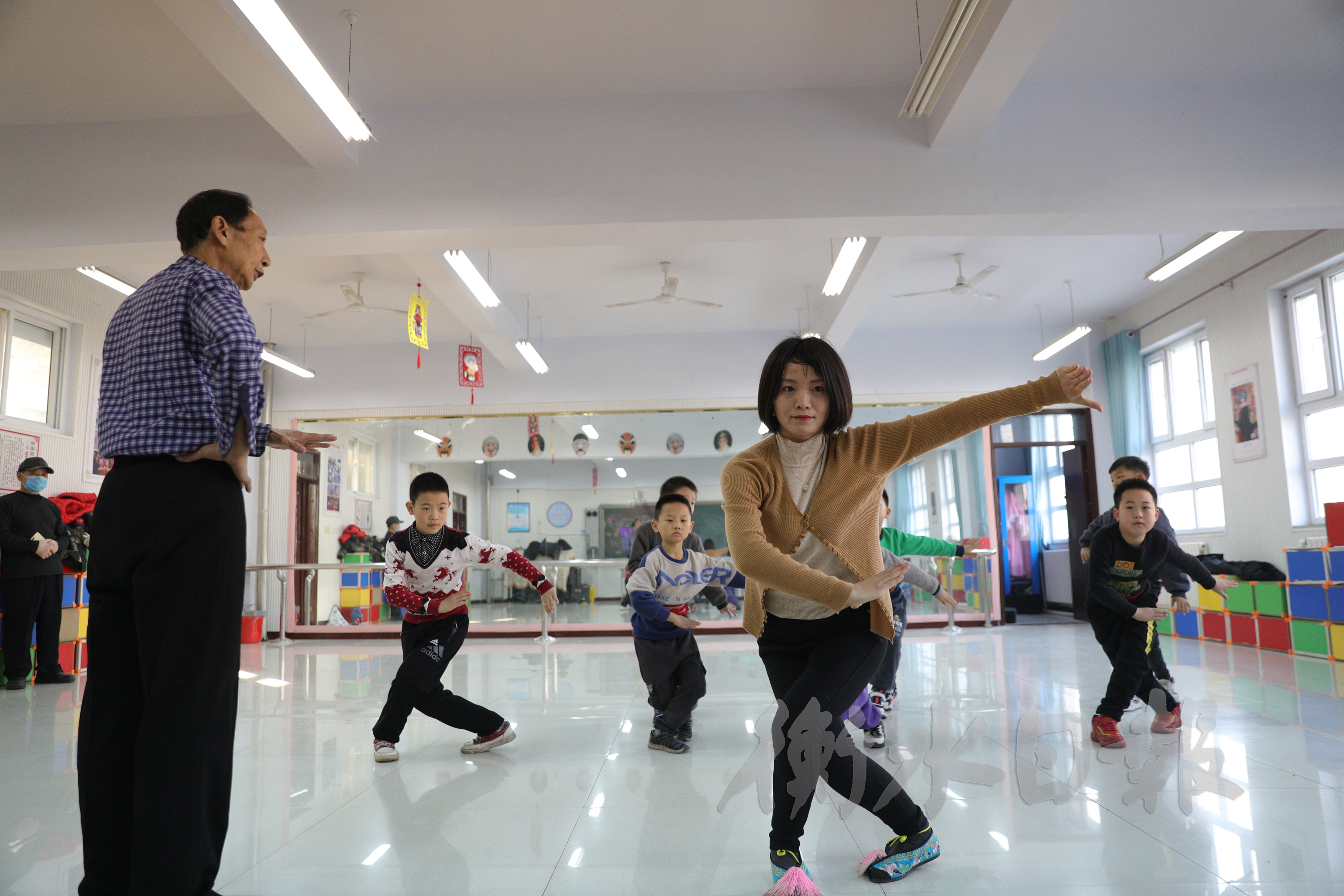 肖世明在勝利小學給京劇社團的老師學生們上課。