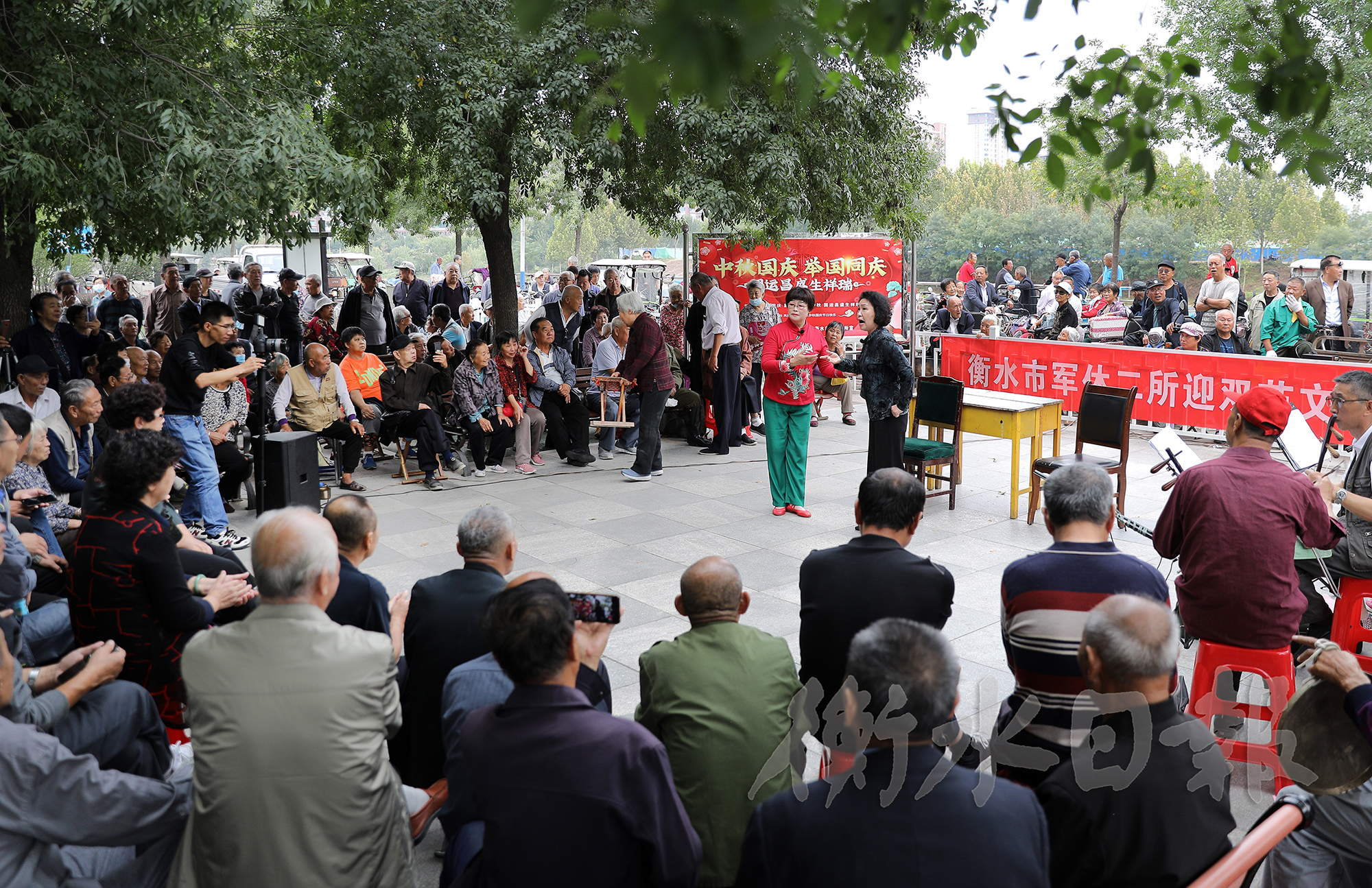 肖世明和陳榮段在市區青年公園為群眾演出。
