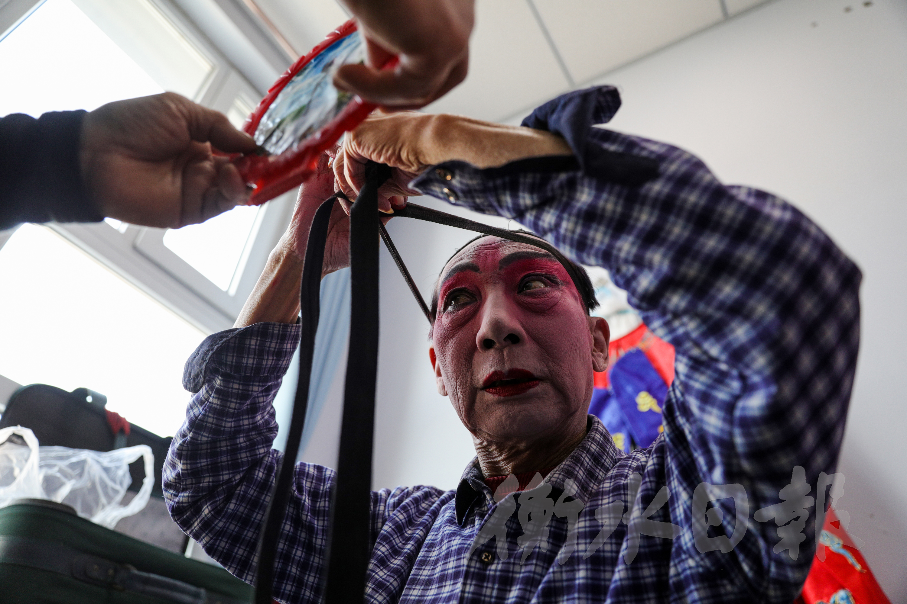 浸淫京劇七十年,京劇藝術已經融進肖世明的骨血里。肖世明夫妻二人身邊聚集著許多熱愛京劇的人。票友馬秀云今年74歲,于阜城縣評劇團退休后,定居桃城區。她熱愛戲曲,身段條件很好。2017年,她在市區百花梨園藝術團遇到了在這里當藝術指導的肖世明。在肖世明的悉心教導下,她登上京劇舞臺,唱起了《金玉奴》、《杜十娘》、《紅娘》的主角。同臺琴師們都贊她的荀派唱腔有板有眼、字正腔圓。直到現在,她每周二下午都準時到肖世明家里學戲,找到了晚年生活的樂趣。