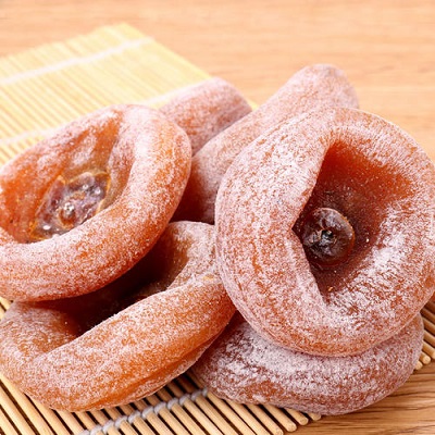 在曬干成柿餅的過程中,柿子內部的水混著糖滲到果皮之外,水分蒸發后糖結晶累積到表面便形成白霜。為了讓柿餅的賣相更好,有些不法商販會在其表面撒面粉甚至滑石粉,用來冒充白霜,所以大家挑選時最好抖一抖。人工“撒粉”的柿餅,白粉層比較松散,輕輕一抖易脫落,而自然上霜的不易脫落;人工“撒粉”的柿餅,白粉分布得較多且均勻,自然上霜的分布不那么均勻。
