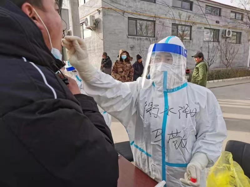 為確保每一位村民能盡早、安全地完成核酸檢測(cè),深州的5名隊(duì)員每天不厭其煩做好自身消毒,并主動(dòng)上門為孕產(chǎn)婦、嬰幼兒、行動(dòng)不便的老人等特殊群體采集咽拭子。得知隊(duì)員們來自衡水,村民們感動(dòng)地說:“大冷的天,你們真是太辛苦了!謝謝你們,謝謝衡水,因?yàn)橛心銈?,藁城一定能勝利?zhàn)勝疫情!”