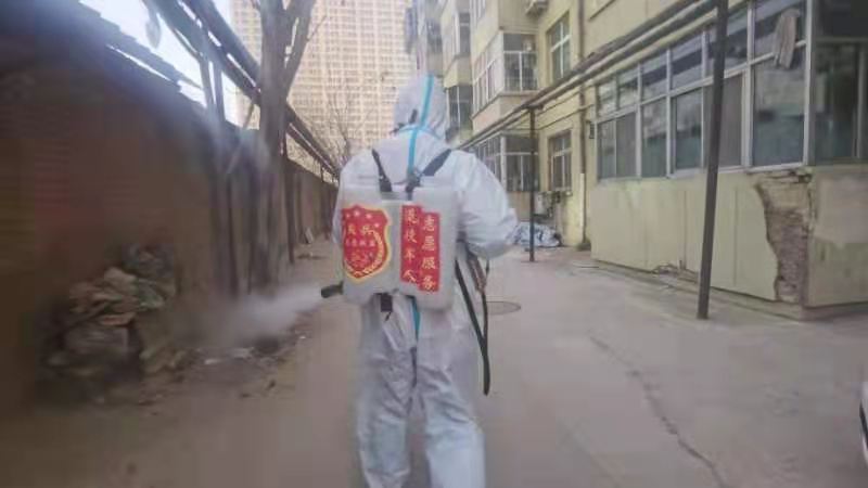 自1月6日起,11名退伍兵自發集結,“全副武裝”,每天背著幾十斤重的消殺設備,挺進全市多所老舊小區。據了解,這已是他們第二次行動。“2020年疫情暴發后,我們第一時間與各街道社區取得聯系,每天進入15個老舊小區全面消殺,一天沒停,干了一個多月”,隊員張冰回憶,“最累的一次是給一棟27層高的樓消毒,一層一層地爬,最后累得腿肚子都抽筋了!”