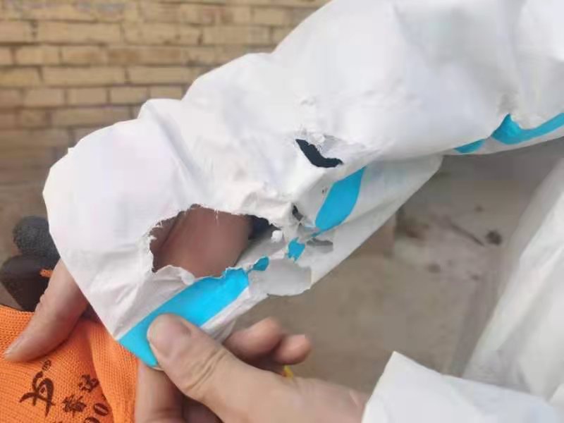 雖然天氣嚴寒,但由于作業時間長,彌霧機持續高溫,竟燙壞了一位隊員的防護服,衣袖上破了好幾個洞。“衣服被燙壞不算啥,去年我的手都被燙破了皮。”張冰笑著說。