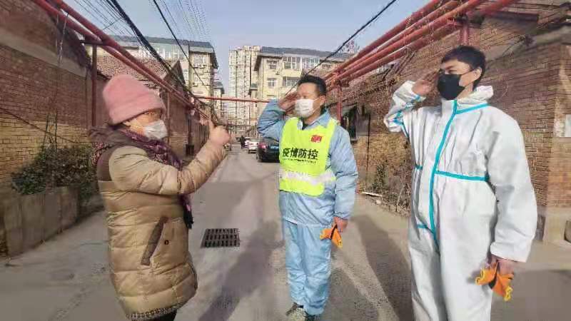 13日下午,在衡水市棉麻公司家屬院,隊員們身穿防護服,頭戴面罩,背著消毒桶,分不清誰是誰,消毒箱上張貼的“尖兵”二字是他們最亮的標志。“你們累了就歇會兒啊!喝不喝水?肚子餓不餓?”居民王女士一邊用手機拍下了他們忙碌作業的畫面,一邊送上誠摯的問候。