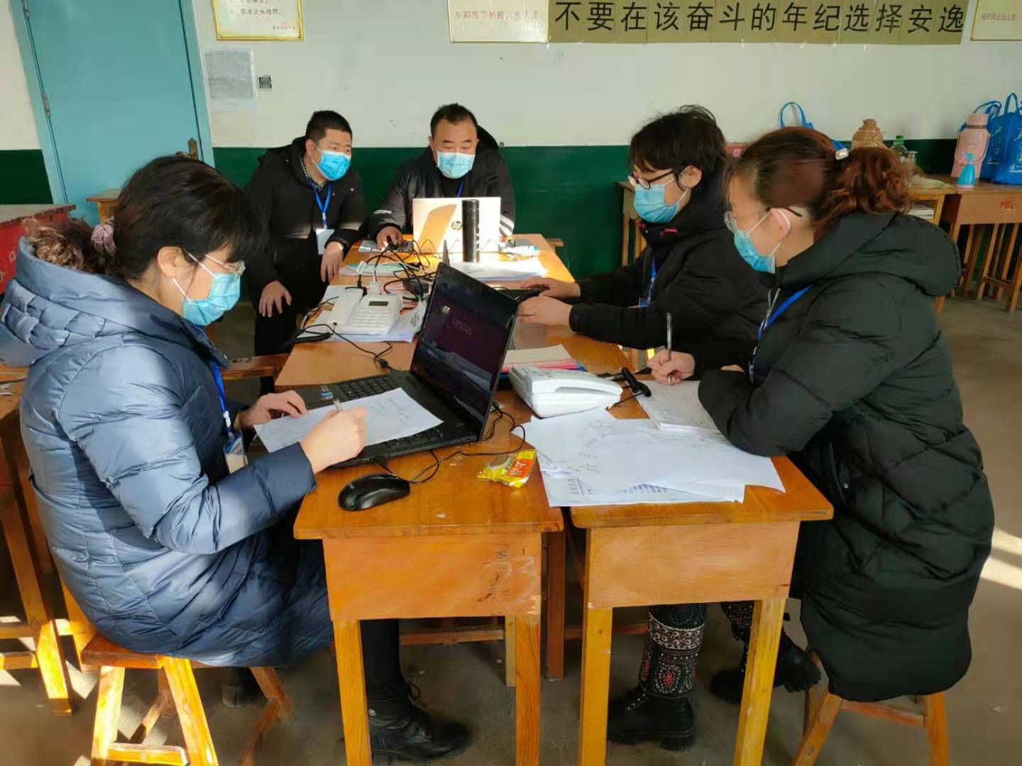記者問隊員們是否覺得辛苦,隊長田志梅回答:“苦點兒累點兒不算啥,病毒都到家門口了,我們別無選擇,唯有主動迎戰,堅決抗擊!”說著,他們又接到了指揮部的流調任務,又開始在張家莊鎮中學的教室里忙碌起來。田志梅說:“這里本應該是孩子們學習知識的地方,現在卻因為疫情成了我們辦公的場所,我們要再加把勁兒,早日戰勝疫情,讓孩子們重返校園,重新回到自己的課堂上!”