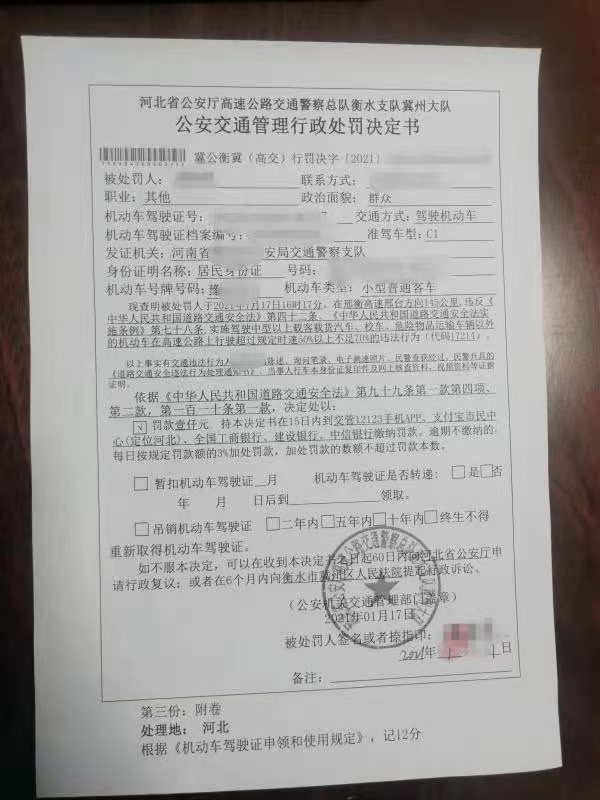 據了解,當時下午4時左右,正在邢衡高速衡水湖西服務區執勤的高速交警冀州大隊民警突然聽到警務通傳來的報警聲音:“豫AXXXX超速,請攔截!”