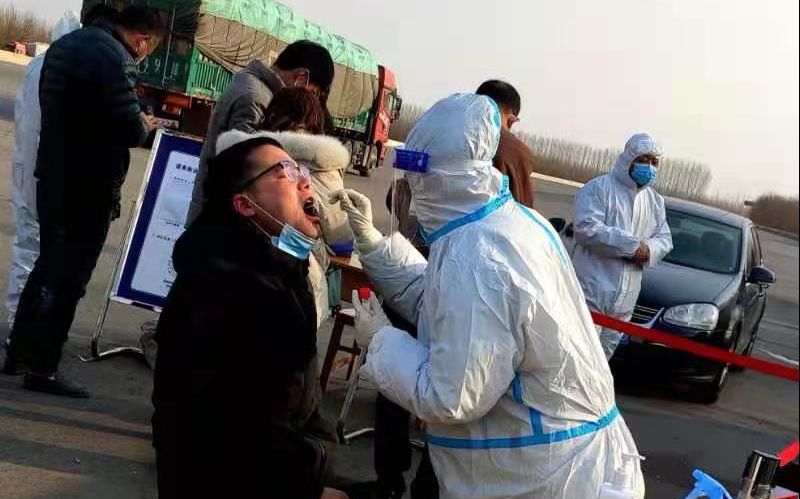 上午10時30分,記者來到衡水西高速口。衡水市第五人民醫院的醫護人員正耐心指導著下車的人員掃描健康碼、登記。該院成人康復科的李雅婷負責為無72小時內核酸檢測證明的人當場采集咽拭子。