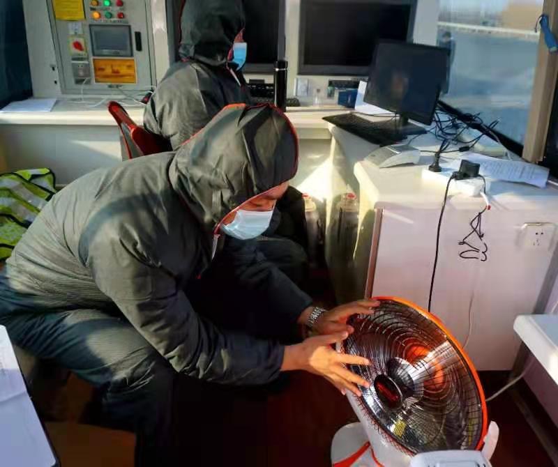 “開飯嘍!”上午9時30分,從大麻森高速口另一輛執勤車里傳來一聲召喚。此時,過往車輛逐漸減少,裕華路派出所副所長趙汝用和同事們剛剛吃上早飯。執勤車內,唯一一臺散發著熱量的“小太陽”成了香餑餑,每人上車第一件事就是湊上前烤手。摘下口罩和手套,可以看到大家的臉頰和雙手都被凍得通紅。
