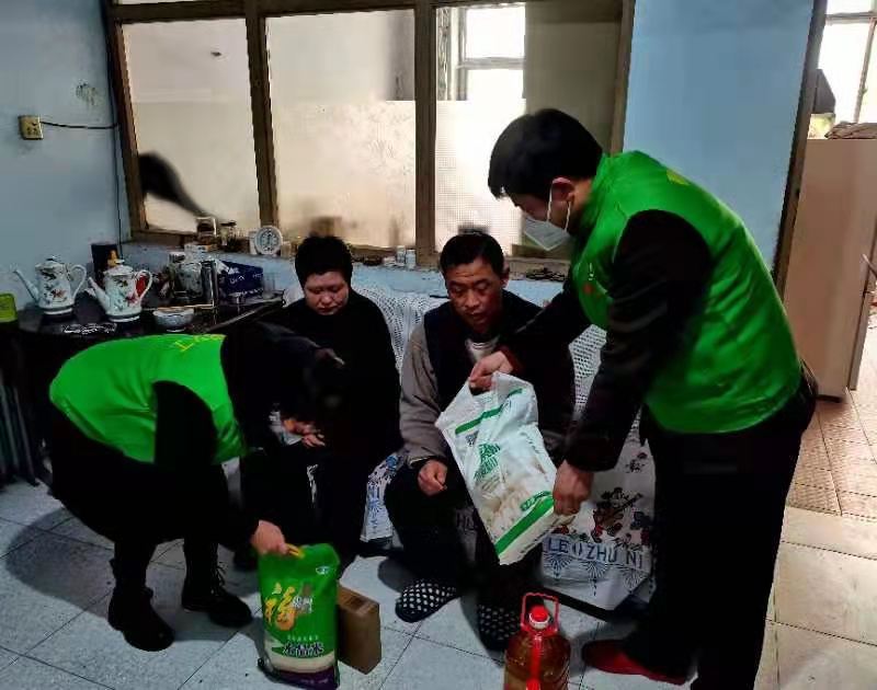 當天,志愿者們冒著嚴寒早早整理好慰問物資,裝好車,兵分3路,分別走訪慰問了市區(qū)廣廈社區(qū)、華東社區(qū)、育才社區(qū)12戶困難家庭,為他們送上米、面、油、棉被等生活用品。每到一處,志愿者們都噓寒問暖,詢問各戶家庭情況及經(jīng)濟收入狀況,了解他們目前存在的困難,同時叮囑他們加強防護意識,保持室內(nèi)通風,勤洗手,出門必戴口罩,不聚集,切實配合社區(qū)開展好疫情防控工作。