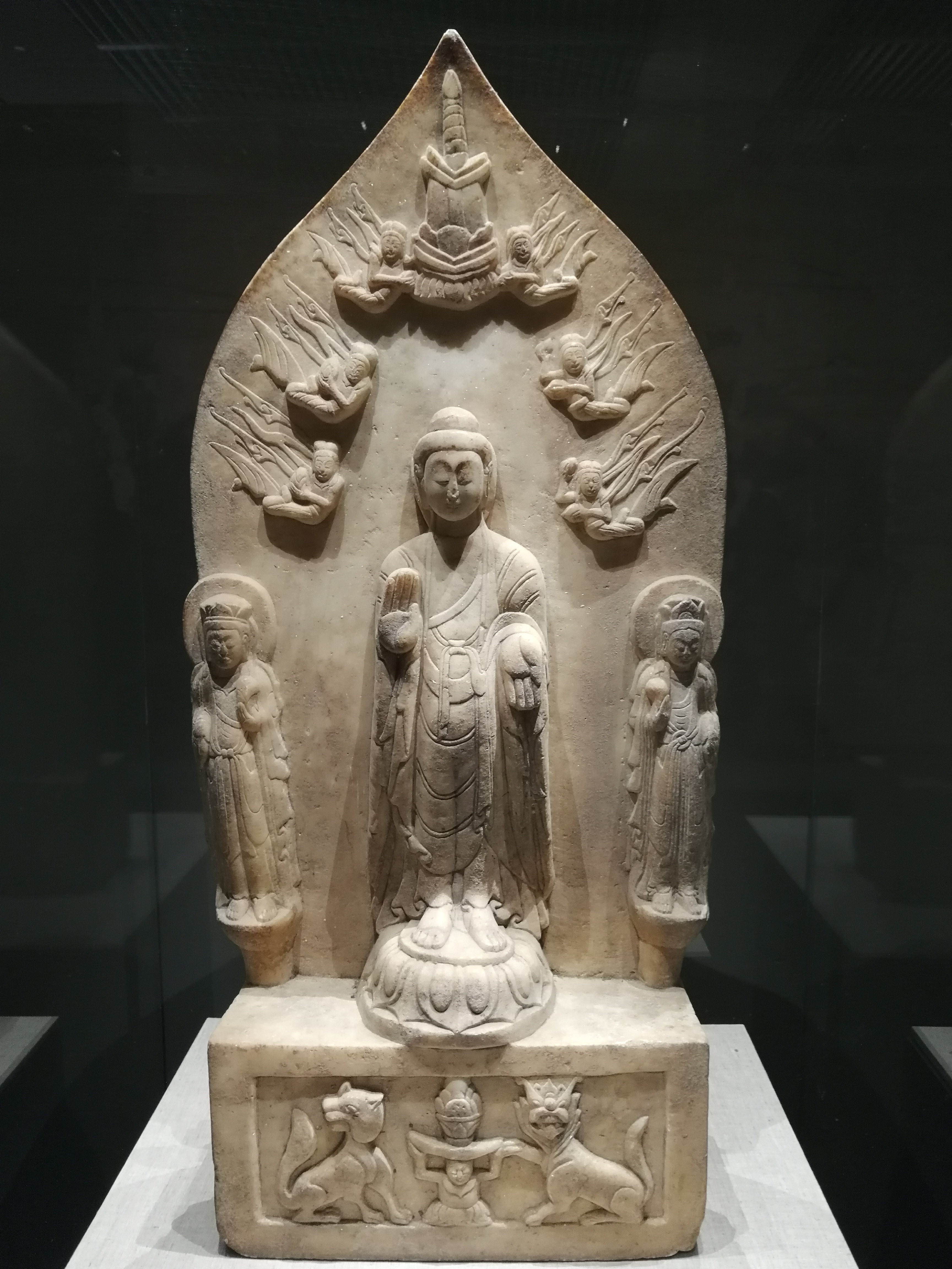 1984年7月,該佛像發(fā)現(xiàn)于武邑縣袁小寨村,為北齊天保三年(公元552年)漢白玉石造像。