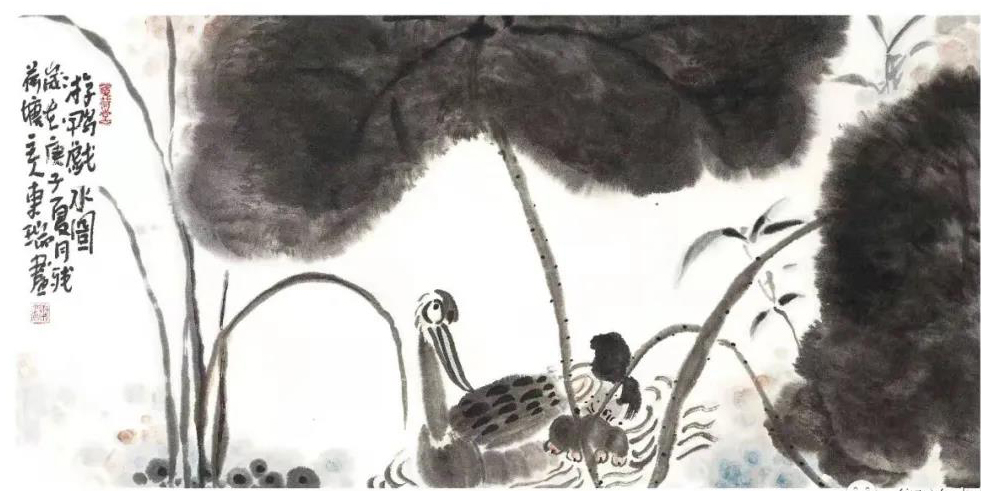 “你看這鋪天蓋地的塊面,你聯想到是碧天連水水連天呢?還是接天蓮葉無窮碧?進去是一小片天地,修行者在靜觀荷花,在他所創造的朗然畫境中,若只有澄澈精致的寧靜,是遠遠不夠的。在隨機而生、自然天成,沒有拘謹刻意、矯揉造作的水與墨的交響中,參禪坐忘,自在其中,直指‘明心見性’之本源,得‘無染’‘無心’之妙諦?!备祵毷老壬锌卣f,好畫是會說話的,枝頭小鳥、凌風仙鶴、煢煢孤荷……帶著情思,以理性與感性的統一,直覺與情景的融合,可謂“思與境偕”。與王東瑞的作品對話,令人馳騁遐想、回味無窮的藝術意境,當是“象外之象”、“景外之景”的禪意了。