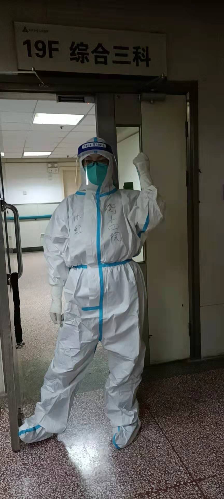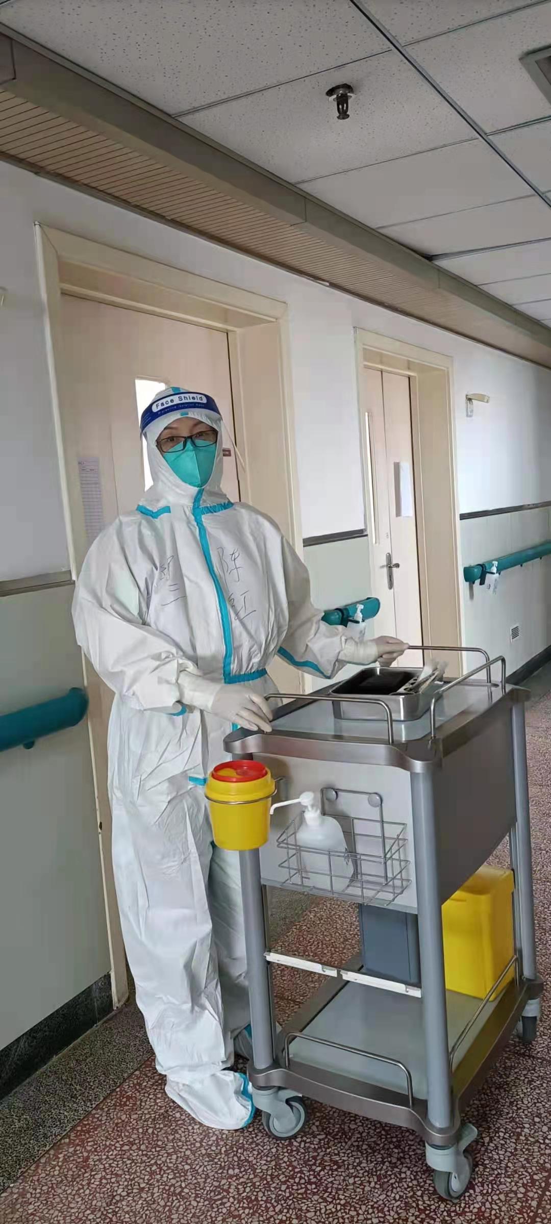進入石家莊市人民醫院建華院區感染六科工作后,悶熱的防護服以及其內被汗水浸濕的洗手衣都未令陳紅感覺難耐,唯有斷奶的痛苦令她苦不堪言。“漲奶漲得生疼,再聽到視頻電話里二寶的哭聲,我的淚瞬間就彪了出來,但誰讓咱是醫護呢,選擇這個職業時就意味著選擇了無私和奉獻。”盡管身體不適,但陳紅還是努力克服,全身心投入到工作中,對待每一位病人,她都細致入微,給其更多的關心和照顧,她常說,“他們沒有家人的陪伴,我們就是他們的家人,必須給病人信心讓他們和病毒抗爭。”她負責的一位患者和愛人同時確診,其兒子也在醫學隔離中,得知這些情況后,她主動和患者溝通,時時觀測其病情,適時給予鼓勵;還有一位患者左下肢受傷行動不便,她在生活中上給與對方很大的幫助,每次她查房經過對方身邊時,患者都會向她豎起大拇指……