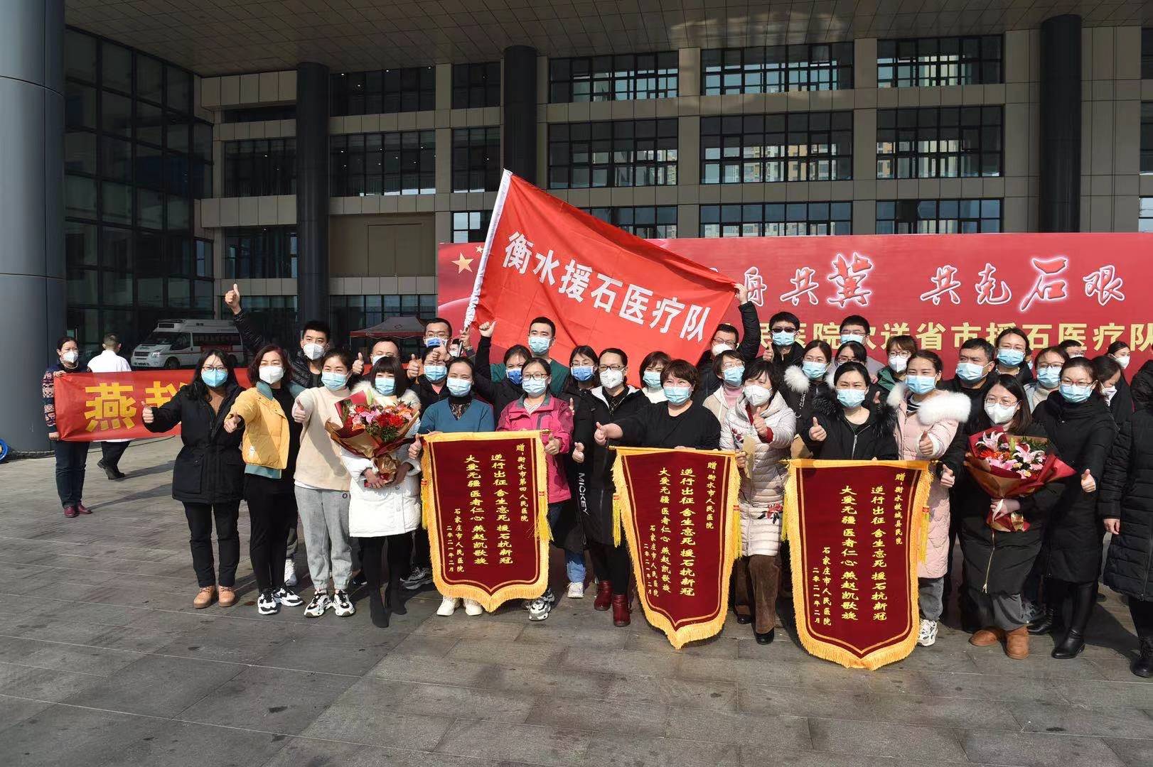1月20日,衡水第二批支援石家莊醫療救治團隊出征石家莊,進入石家莊市人民醫院進行醫療救治工作。在支援的23天里,來自衡水市人民醫院、衡水市二院、衡水市四院、故城縣醫院的36名醫護隊員們克服重重困難,沖鋒在前,出色地完成了各項醫療支援任務,展示了衡水醫護人員的高尚醫德和精湛醫術。11日上午,石家莊市舉行了隆重的歡送儀式,并向衡水市各醫療機構送上錦旗,表達感激之情。隨后,隊員們登上迎接他們的大巴車,順利抵達衡水。
