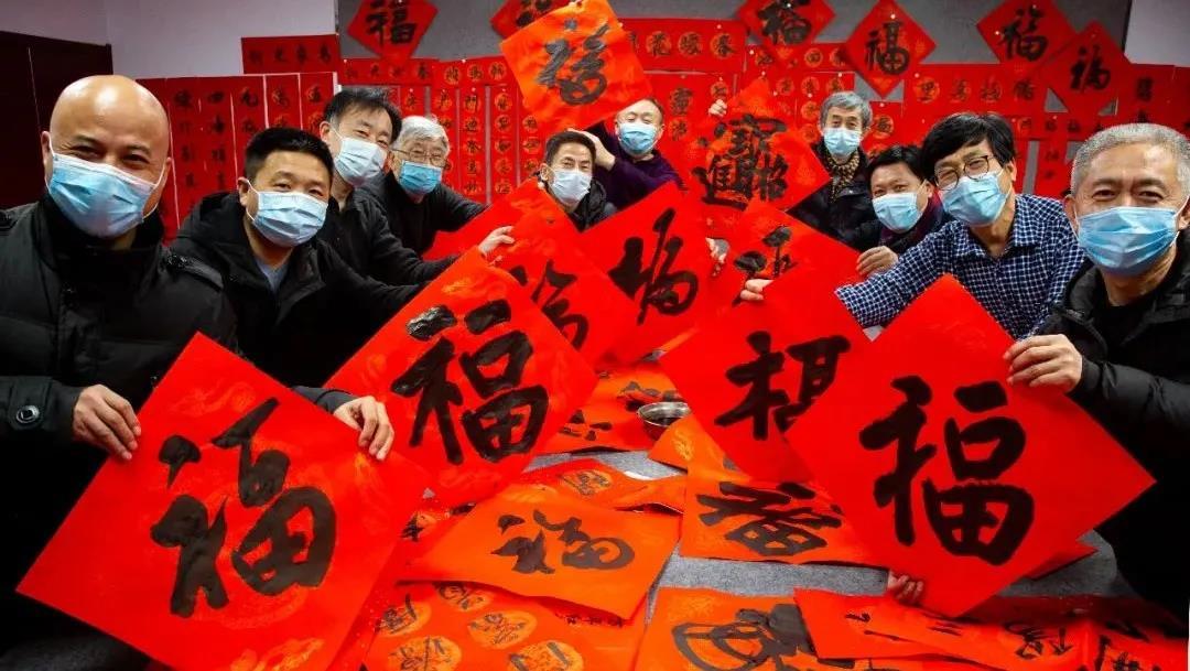 春節前,冀州區書畫協會的10余位書法家還赴機關、企業、鄉村、社區舉行了現場送祝福活動,給大家送上了福字和春聯作品。
