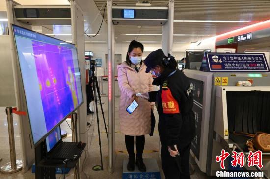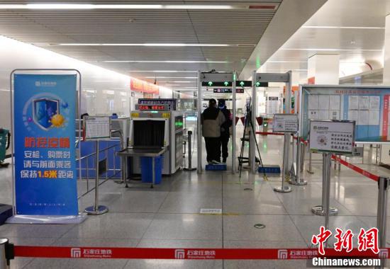 為做好新冠肺炎疫情防控,同時(shí)滿(mǎn)足民眾出行要求,自2月19日起,河北石家莊地鐵全面恢復(fù)運(yùn)營(yíng),城市公共交通進(jìn)一步復(fù)蘇。圖為市民通過(guò)安檢。(中新社記者 翟羽佳 攝)