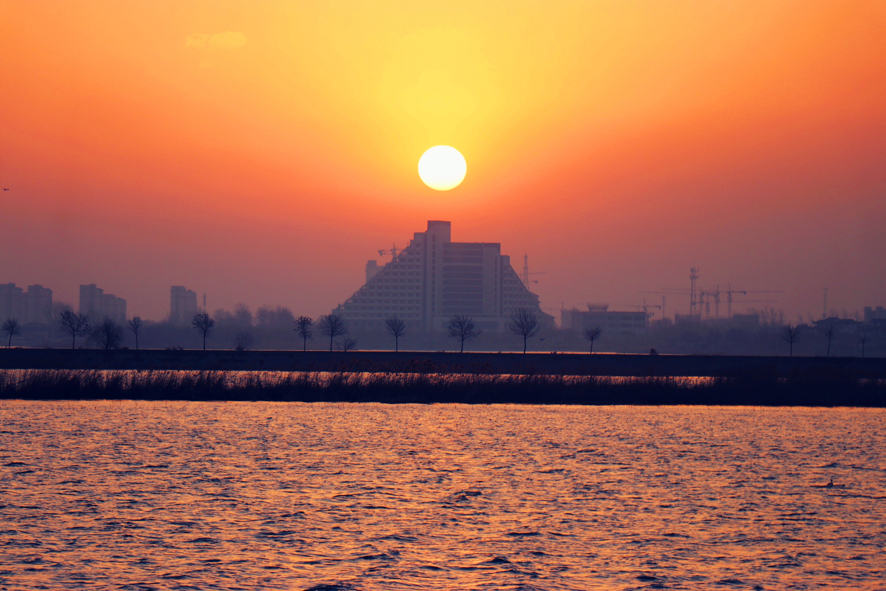 新春的冀州,散發著勃勃生機,清晨美麗的朝陽把城市喚醒。漫步衡水湖畔,金燦燦的朝暉漸漸染紅了東方的天空,朝陽在水天相接處冉冉升起,已露出半張臉,是那樣含蓄,又滿含著熱情。