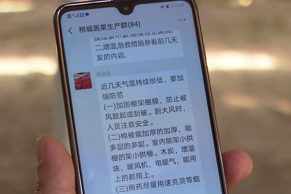 農(nóng)藝師龔俊良在微信群推送蔬菜種植管理知識。張志斌 攝