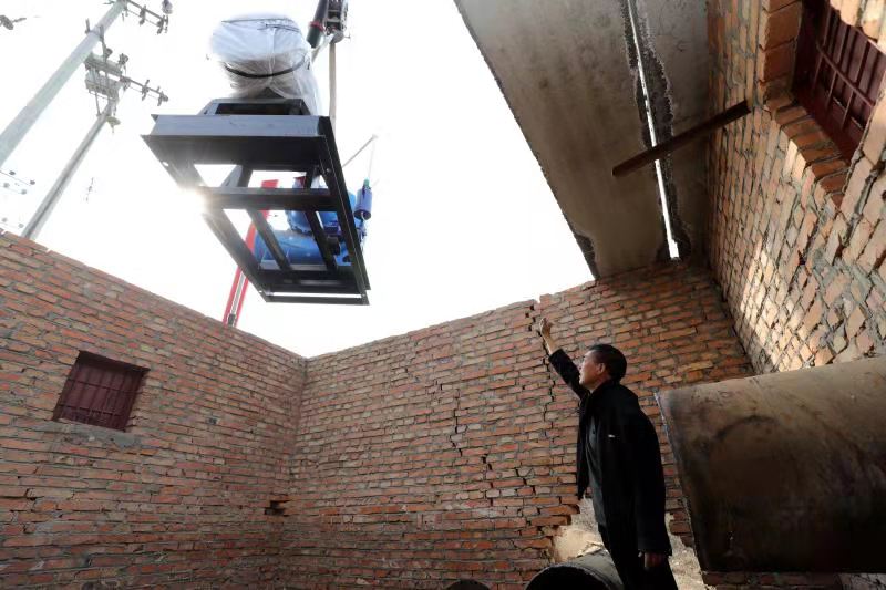 23日,鄧莊鎮周言干渠滏東排河揚水站的新水泵正在進行吊裝。