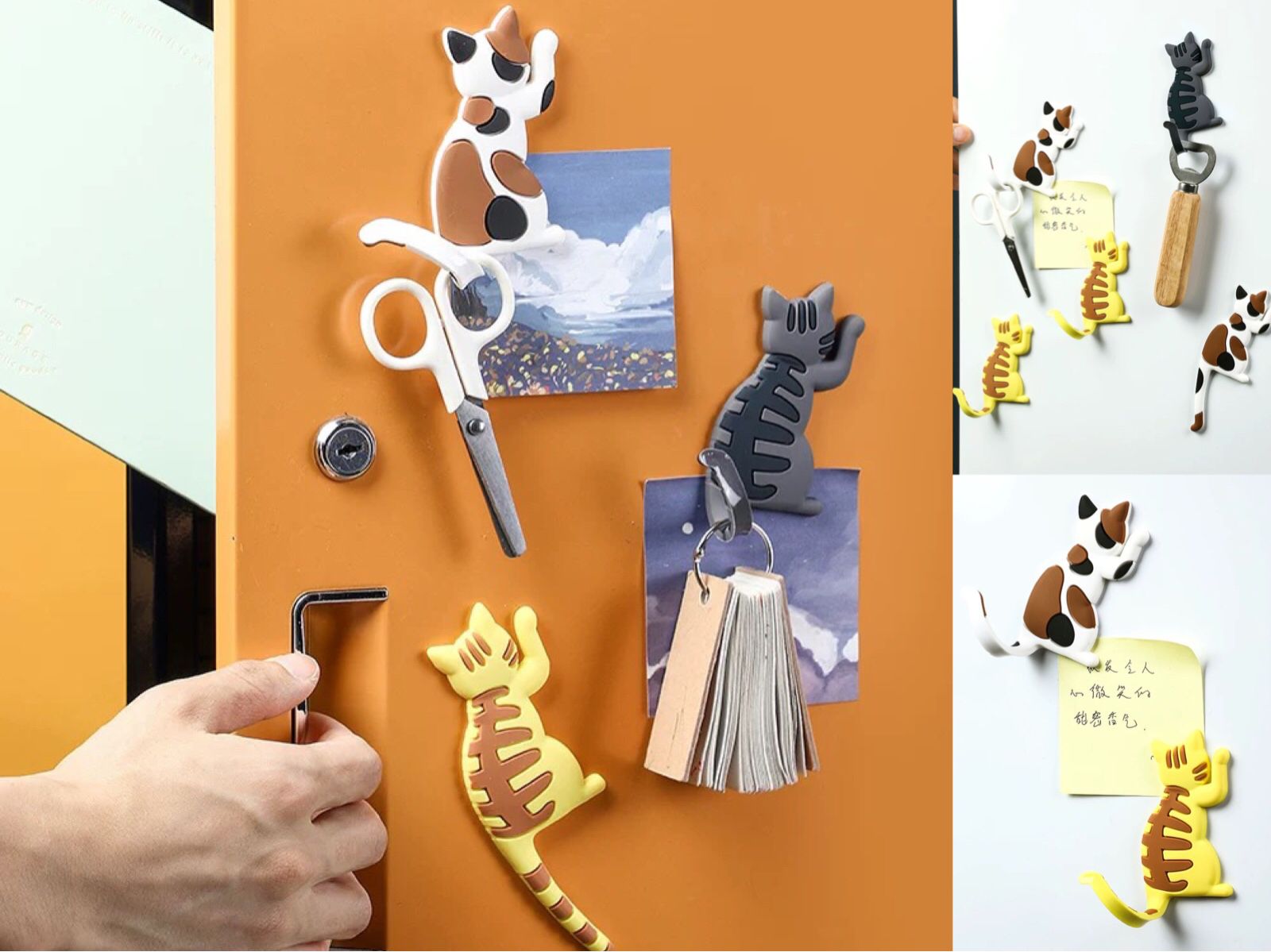 小貓咪的萌系造型,給冰箱增添了一絲趣味性。這款貓咪磁吸冰箱貼擁有柔軟的質感,貓咪的尾部可以隨意彎曲,折疊成掛鉤懸掛生活小物件,包括鑰匙、耳機、剪刀等。同時,還可以做成留言貼,將便條貼在冰箱處,可隨時提醒重要事項。