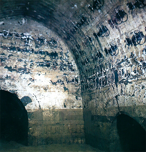 前南側室內壁畫主要表現下屬官吏治事和伍伯侍衛的情景。中南側室內壁畫描繪墓主人坐于帳內,后有侍女,右有男侍和伎樂,左有屬吏謁見的情景。北壁畫一幅建筑圖是按照墓主人生前所占有居室情況畫的一幅規模宏大、庭院錯落的鳥瞰圖。它的構成為一大四合院里套著許多小四合院,大門和中門之內是一個“日”字形的兩進四合院,以該院為中心,繞其左右和后部,均有許多庭院。后排中間一個大院內,設有一座五層的方柱形瞭望樓,樓頂為廡殿式,頂層周圍有欄桿,右側后部有一測風旗,桿頂有一向風鳥,前部置一扁圓形報警用鼓,樓的中間三層均有方形射孔。從建筑風格來分析,四合院在東漢時期就成為北方民居的顯著特征,同時方正、對稱等建筑理念也得到充分體現。從測風旗和向風鳥在城堡中的應用來看,安平當時的科學技術及制造業已相當發達,這也是向風鳥早在東漢就被用在建筑上的一個有力佐證。從瞭望樓及報警鼓、射孔的設置來看,東漢末年政局動蕩、戰亂頻仍可見一斑。