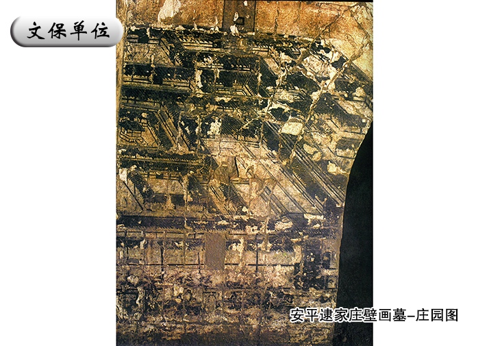 1971年春季,安平縣逯家莊村民在取土時發現了一座大型磚室墓,并經河北省文研所清理發掘,因墓中沒有記述墓主身份的文字和器物,只有墻壁上的繪畫尚清晰精美,后墓室壁上有“惟熹平五年”(東漢紀年,公元176年)白粉書寫隸體字,所以定為東漢壁畫墓。