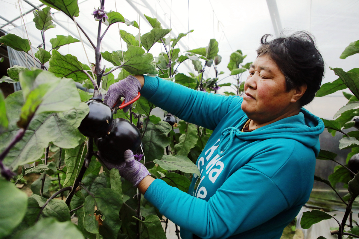 “我是附近村的,在這兒打工一年能掙兩萬多元,還不耽誤自家種地。”大棚工人李蘭賞邊摘茄子邊跟記者聊天。