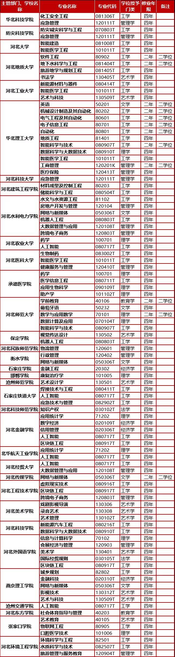 近日,教育部發布通知,公布2020年度普通高等學校本科專業備案和審批結果。確定了同意設置的國家控制布點專業和尚未列入專業目錄的新專業名單。看看河北新增+調整+撤銷了哪些專業——