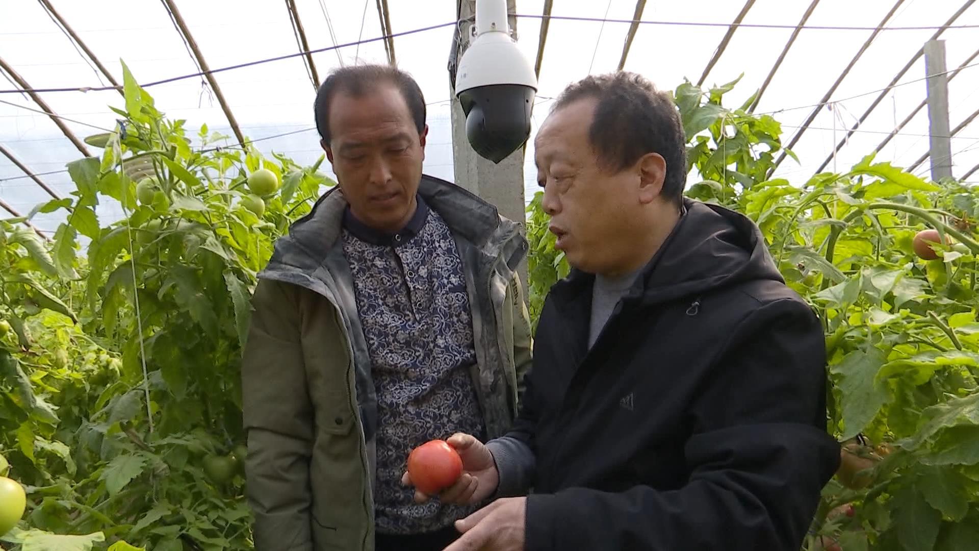農技人員為農戶講解溫室西紅柿管理的注意事項。劉宏業攝