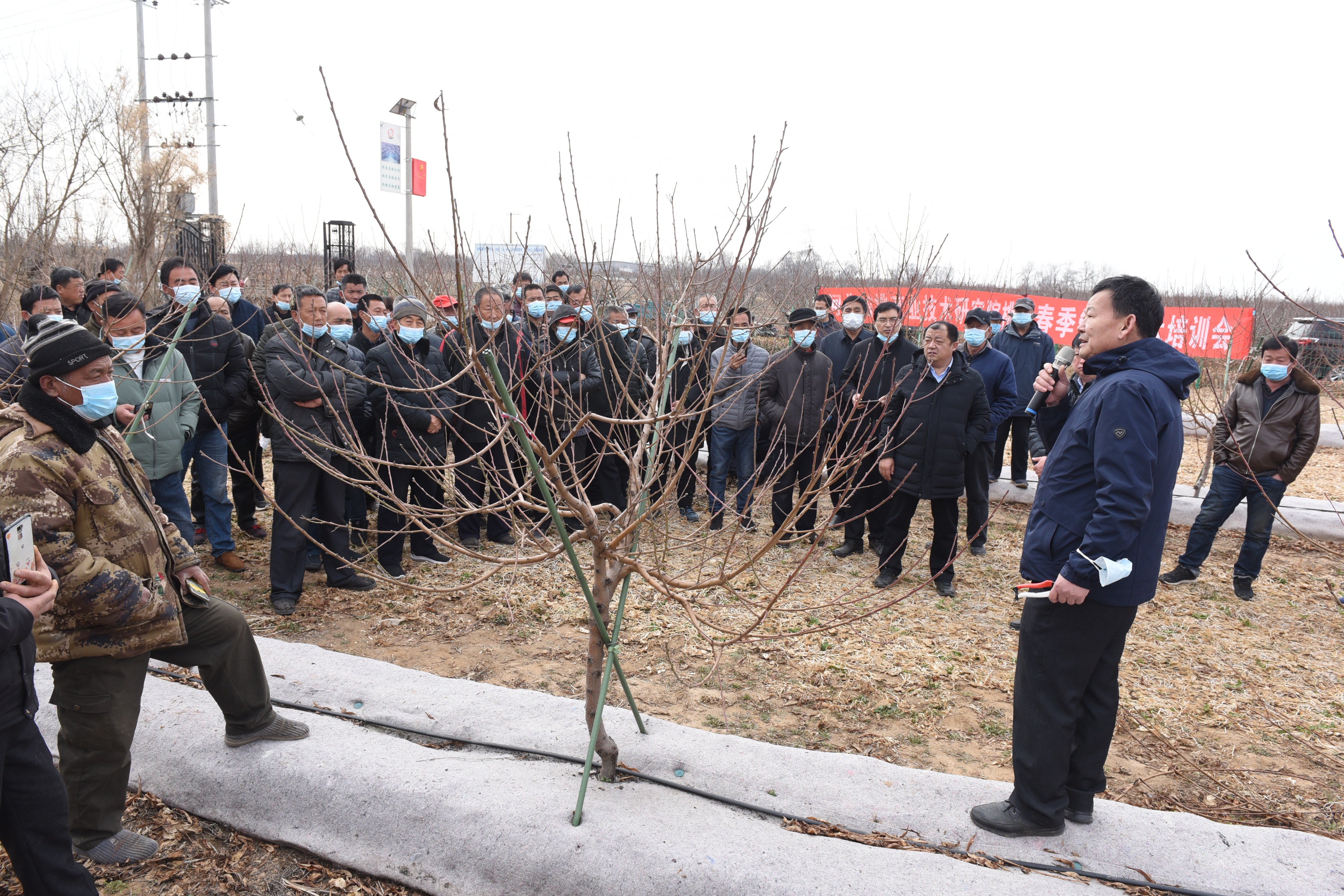 當前正值春耕春管的關鍵時期,作為蜜桃之鄉,深州市人民政府、農業農村局專門邀請國家桃產業技術體系數位國家級專家和衡水市果樹技術推廣站專家,在深州市良桑場果園舉辦了此次培訓現場會。來自該市穆村鄉、東安莊鄉、深州鎮、辰時鎮、兵曹鄉、大屯鎮、喬屯鄉的鮮(蜜)桃種植大戶、合作社技術人員共計100余人參加。