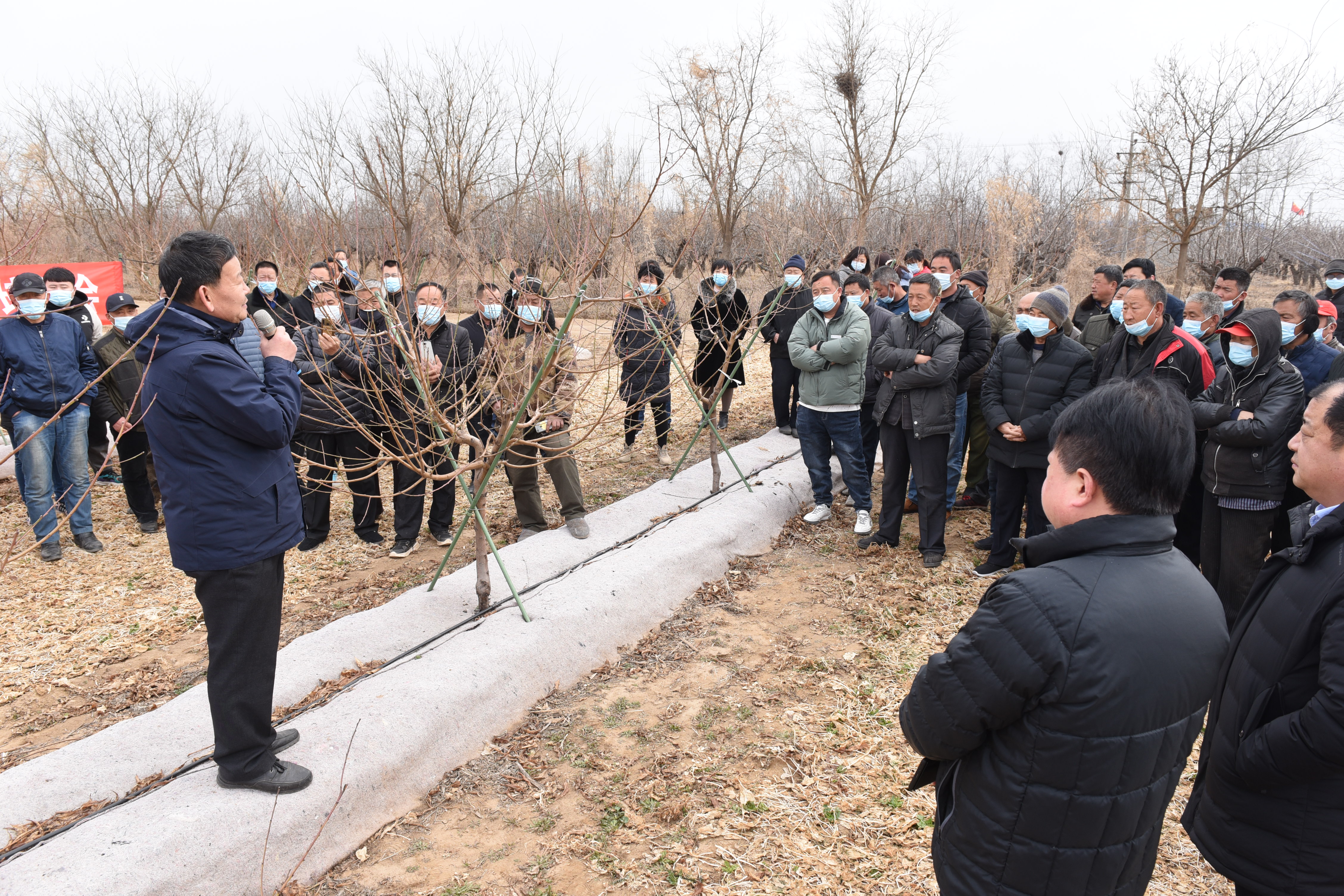 下午2時30分左右,伴著大家的掌聲、歡笑聲,國家桃產業技術體系首席科學家研究員姜全走進桃園。“一年之季在于春,我們給大家送技術搞服務來啦!”樸實的開場白,再次激起熱烈的掌聲。