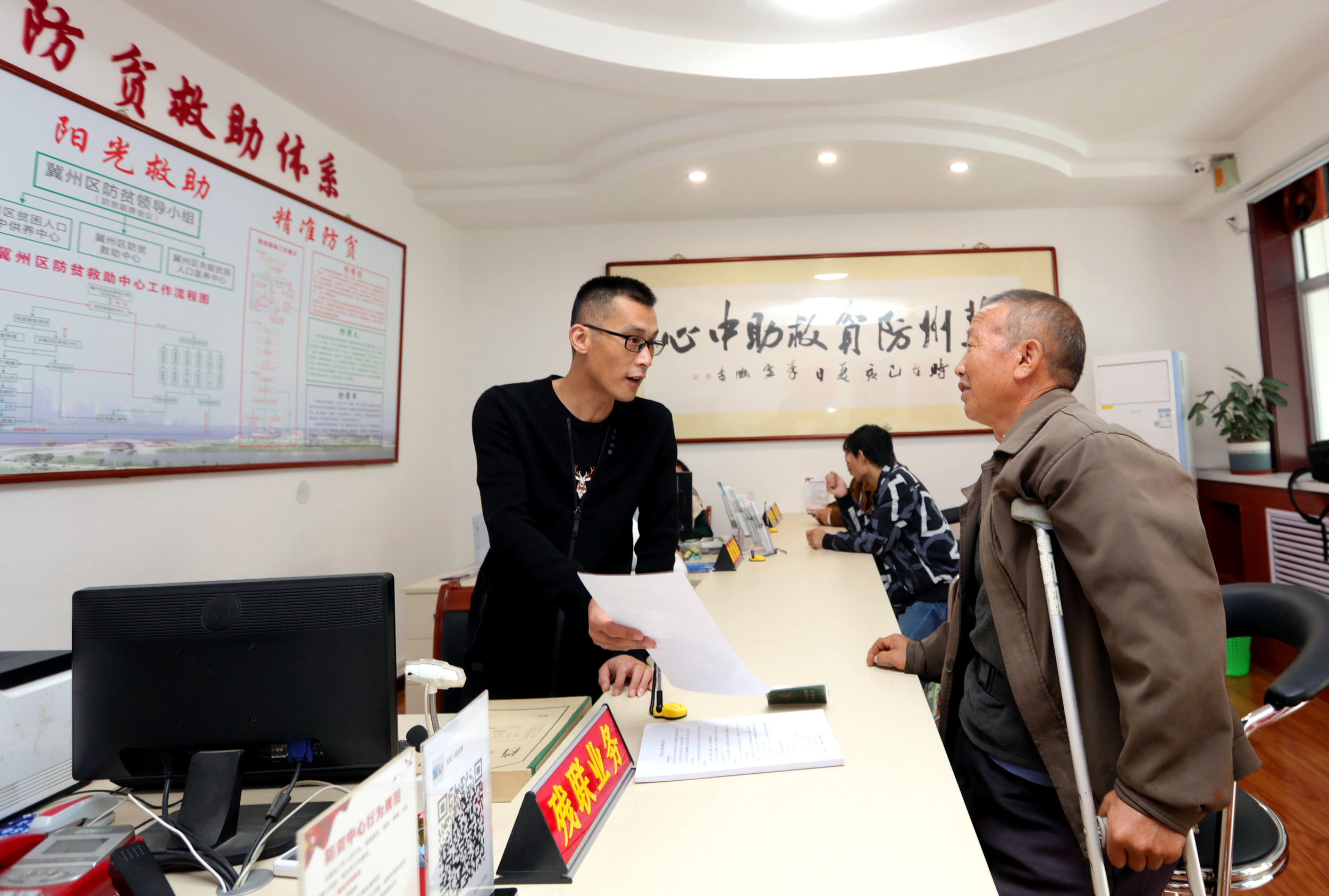 冀州區防貧救助中心工作人員正在接受群眾咨詢。(資料圖)衡水日報社供圖