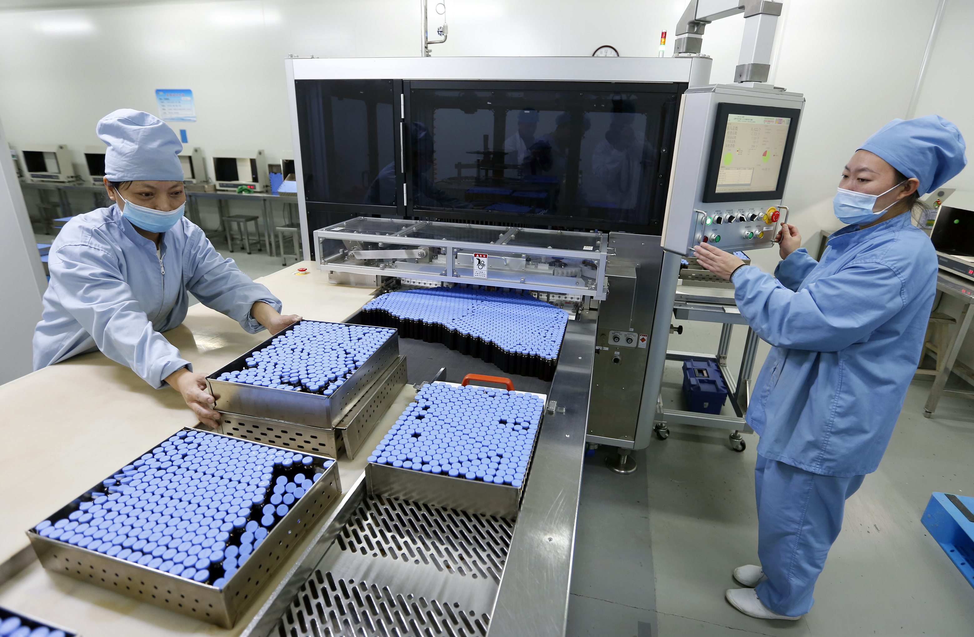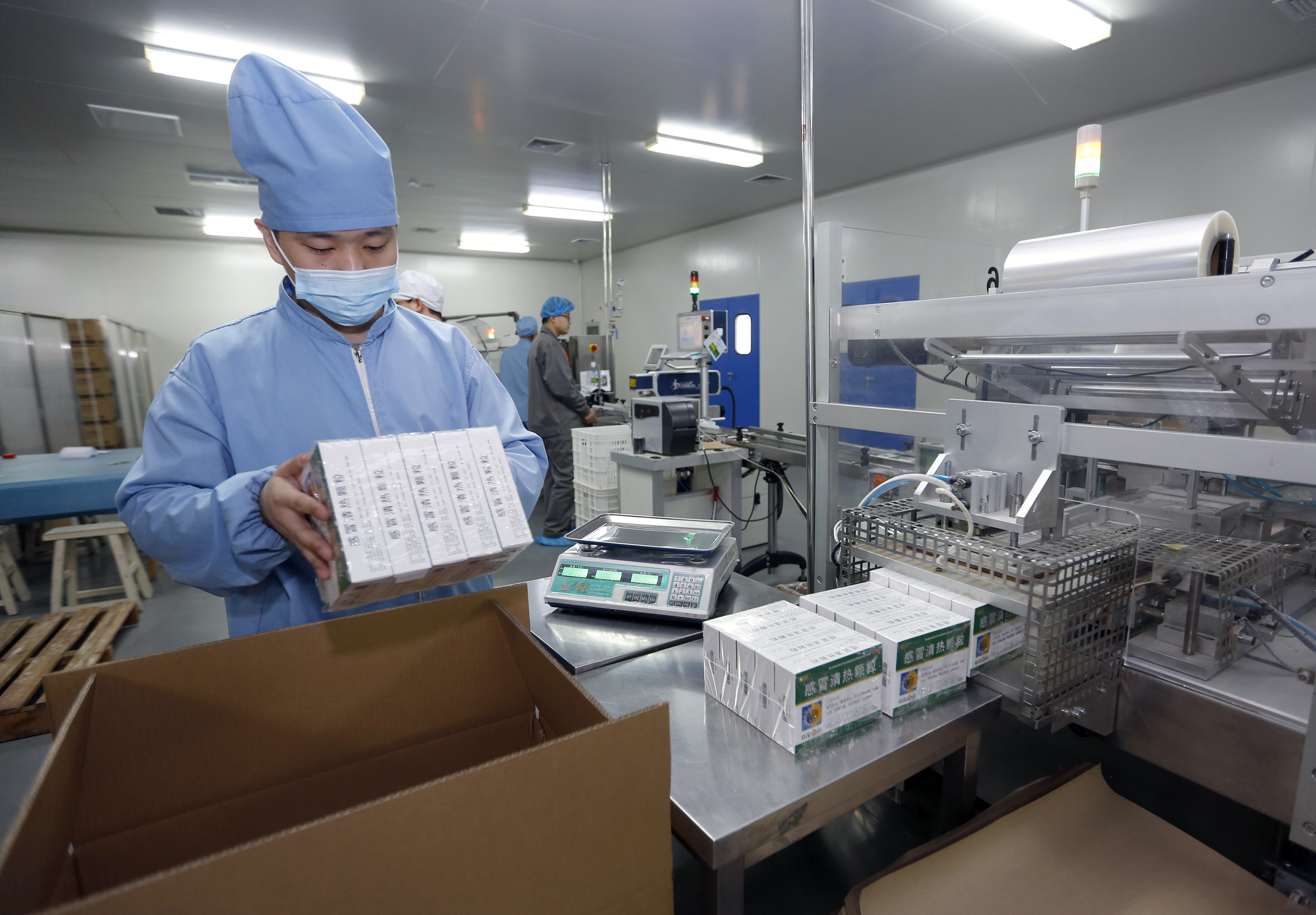 葵花藥業集團(冀州)有限公司綜合制劑車間工人正在進行燈檢作業。