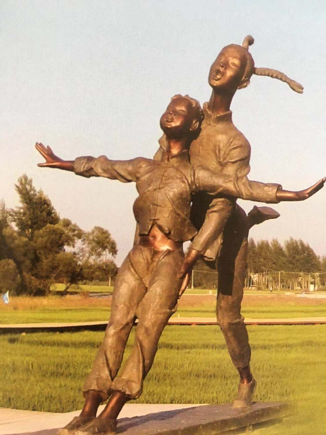 銅雕作品《快樂童年》。饒陽縣融媒體中心供圖