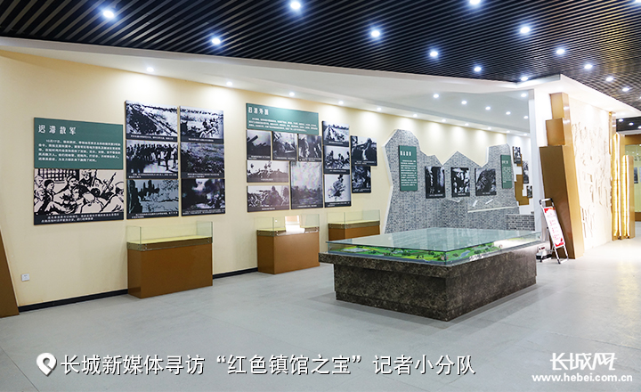 陵園中軸線(xiàn)北部?jī)蓚?cè)各有一排展室。東西展館各3間,分別為紀(jì)念館、接待室、影片放映室等。跟著講解員的腳步,記者來(lái)到清風(fēng)店戰(zhàn)役紀(jì)念館。