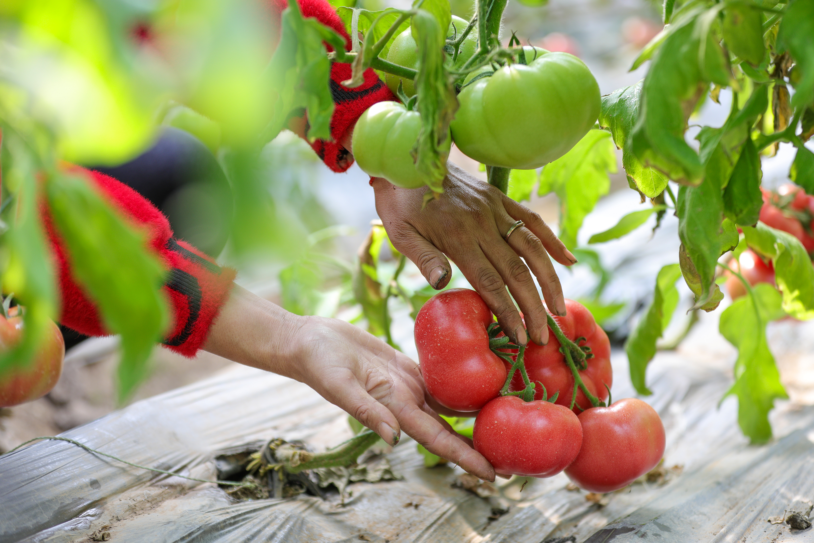 2021年3月24日,衡水市桃城區趙圈鎮胡家堂村村民在大棚內管理西紅柿。