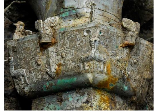 此次三星堆遺址考古出土的大型青銅器。圖片來源:新京報網。