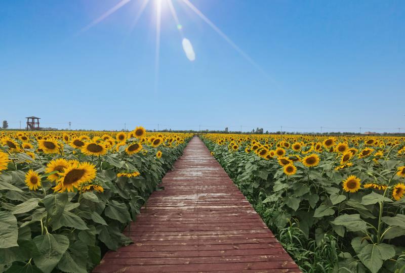 楊屯萬畝花海景區緊鄰安平縣城,距北京、天津約2小時車程,距雄安新區直線距離46公里。景區總占地面積24.4平方公里,轄7個村莊,建設用地5000余畝,南水北調工程中京唐南、北分干渠兩條水系貫穿其中,水域充足。
