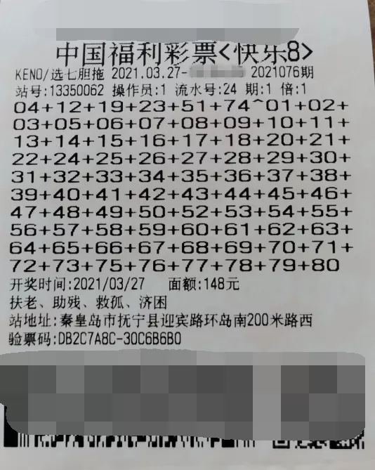 3月24日,秦皇島快樂8試點銷售首日,13350044站便中出“選八中八”2注,獎金合計10萬元。僅隔3天,3月27日快樂8第2021076期,秦皇島市撫寧區13350062站彩民憑借一張“選七”6膽全拖票,獲得“選七中七”14注,單注獎金10000元;“選七中六”60注,單注獎金288元,獎金合計157280元。