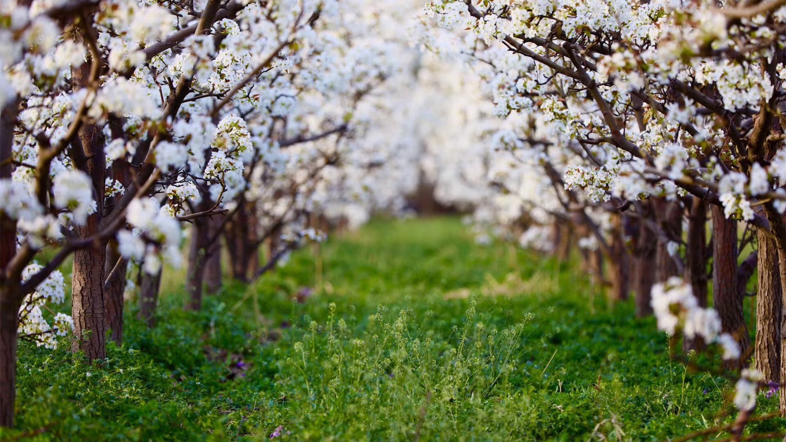 冀州區東部新區的梨園里,潔白的梨花壓彎枝條。嫩綠的葉片打著卷兒從深褐色的枝干上探出頭來,新綠中帶著油油的光亮。