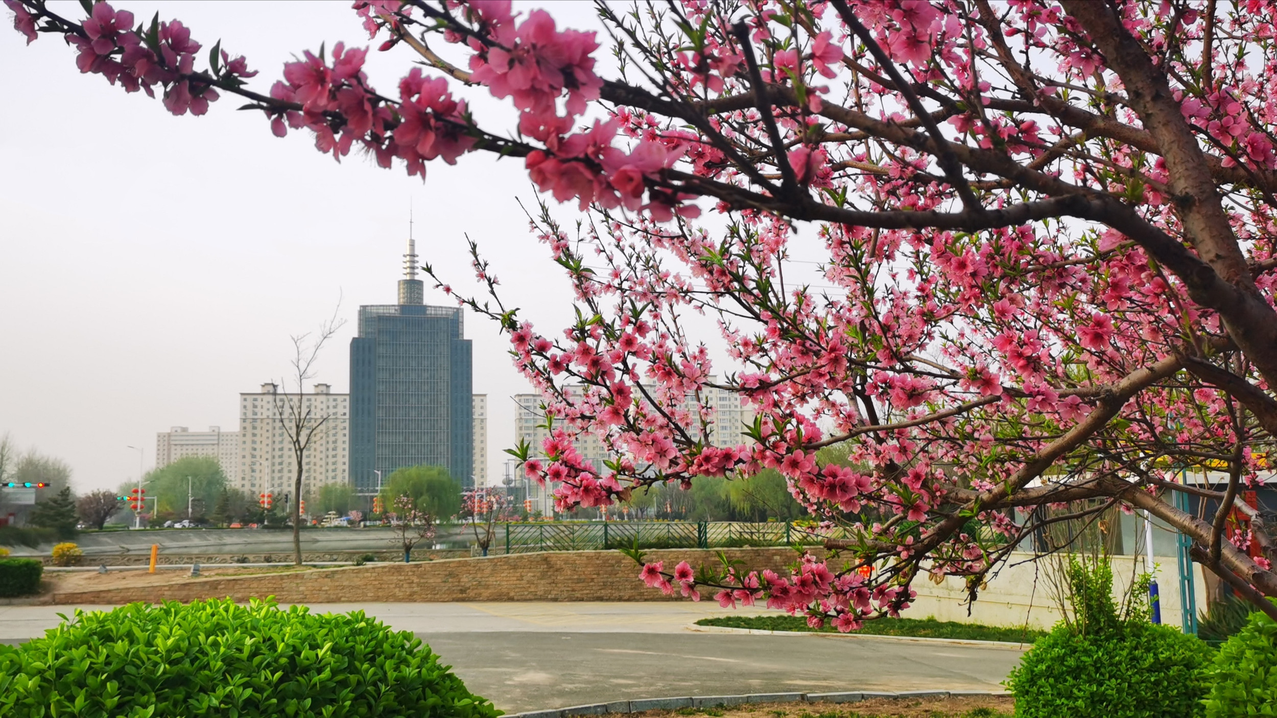冀州區廣電大樓前桃花怒放。主炳銀 攝