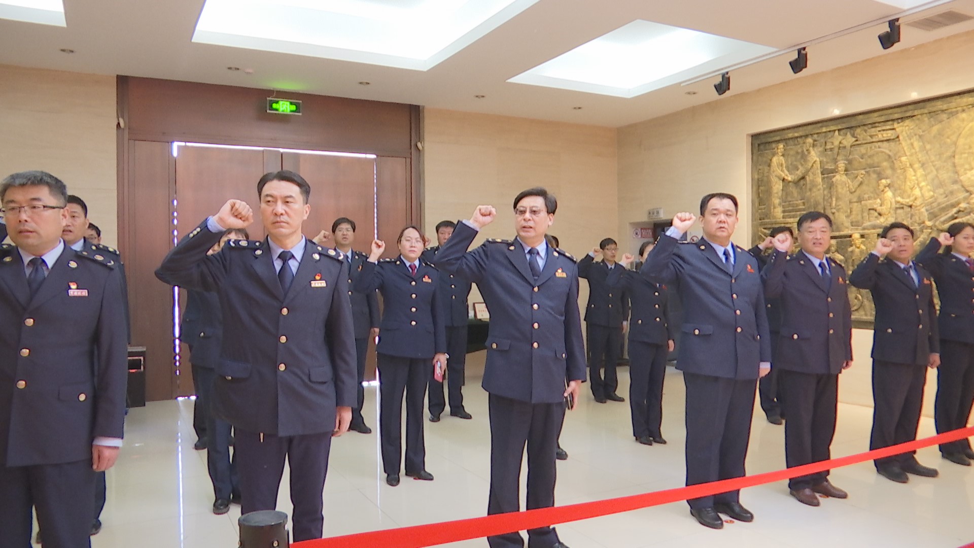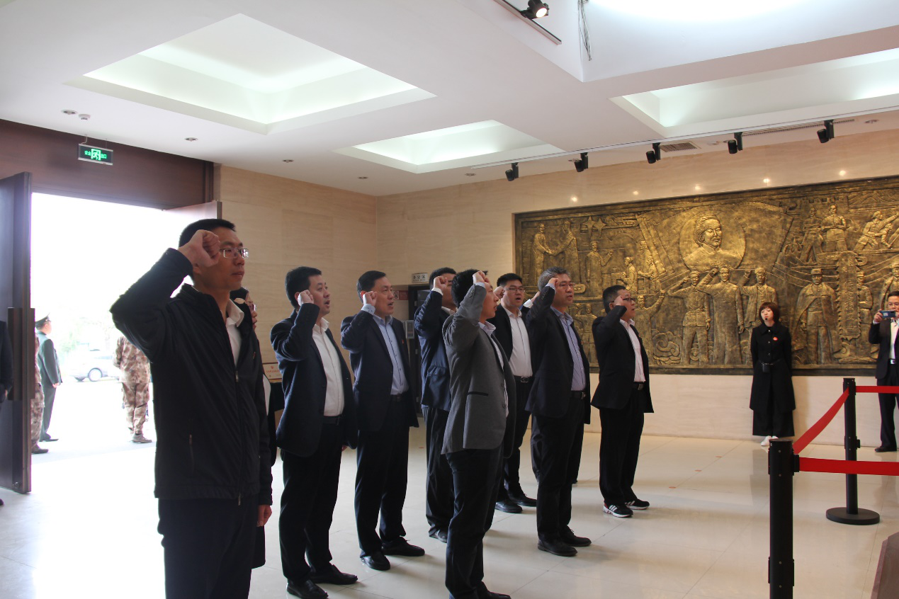 懷著對革命先輩無比崇敬的心情,全體人員在紀念館大廳內,面向鮮紅的黨旗,舉起右手,重溫入黨誓詞。