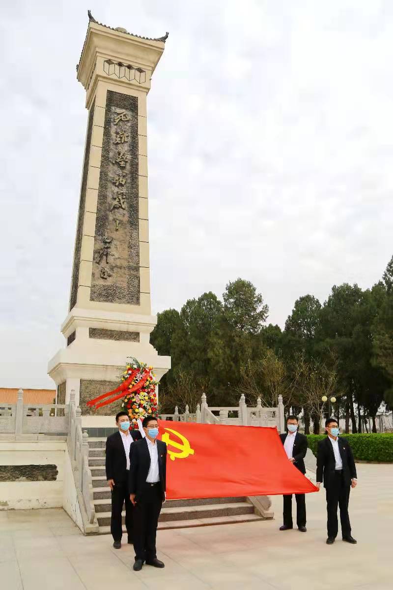 在莊嚴(yán)的紀(jì)念塔前,黨員代表敬獻(xiàn)了花籃,4名黨員高擎鮮艷的黨旗肅穆站立,全體人員默哀致敬,深切緬懷革命先烈的豐功偉績(jī),以錚錚誓言表達(dá)了忠于黨的決心。